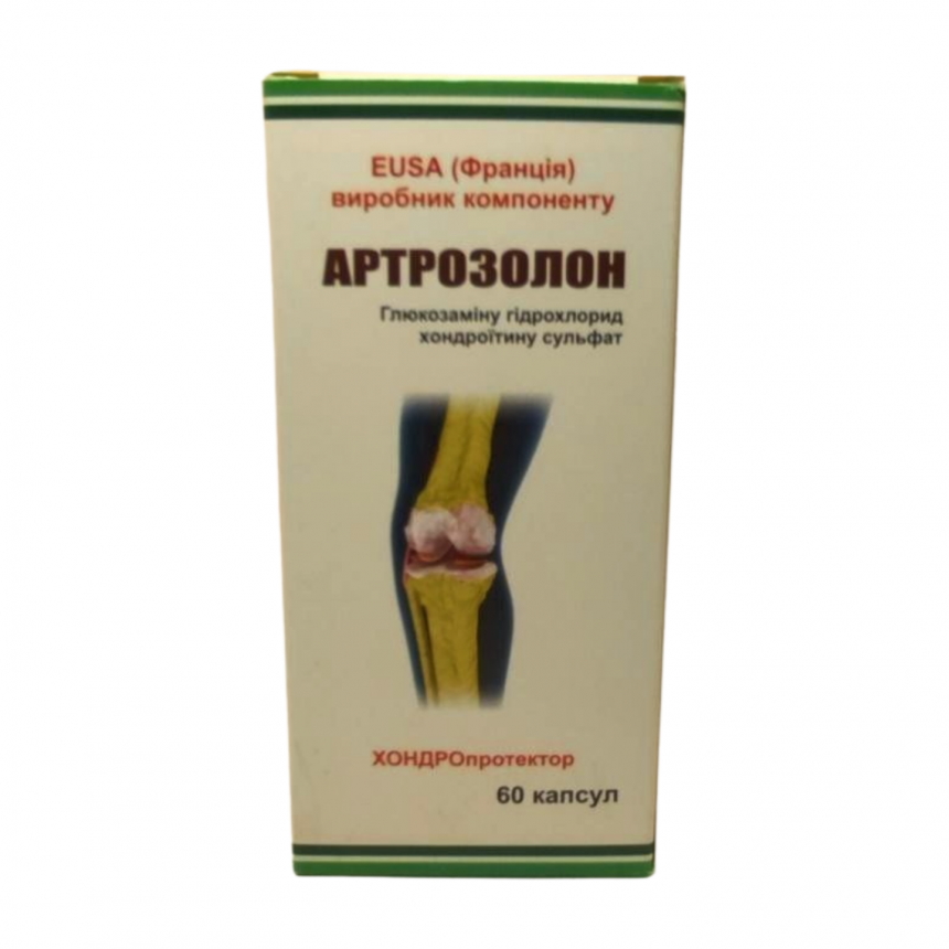 «Артрозолон» – активний комплекс на основі сульфату хондроїтину, Д-глюкозаміну гідрохлориду (виробництво Франція) та екстрактів лікарських рослин. Рекомендований при захворюваннях суглобів, пов'язаних із руйнуванням хряща, для стимулювання вироблення синовіальної рідини, що змащує і допомагає кращому ковзанню суглобових поверхонь. «Артрозолон» призначають для відновлення хрящової тканини; транспортування поживних речовин у сполучну тканину; комфорту суглобів, хребта, сухожиль і зв'язок; корекції метаболізму хрящової та сполучної тканин.