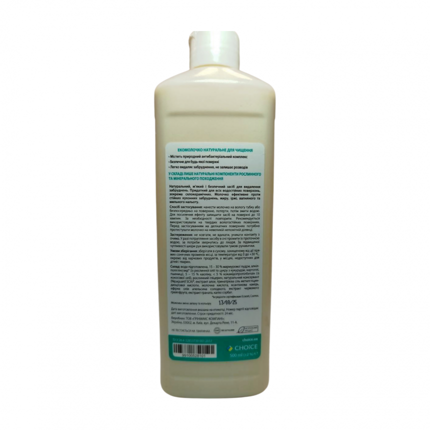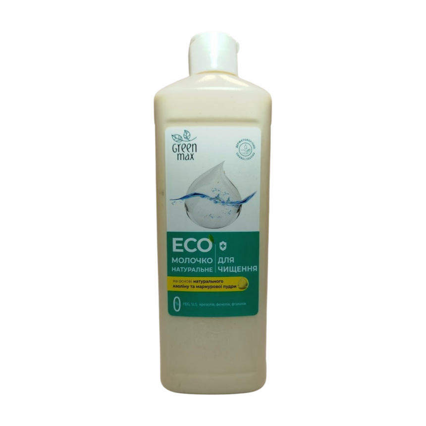 ЕКОмолочко ТМ Green Max для чищення – натуральний та безпечний екозасіб для глибокого та дбайливого очищення забруднень різного походження. Підходить для всіх видів кухонних поверхонь, посуду, кухонного обладнання, у тому числі скла та кераміки, а також для поверхонь у ванній кімнаті. Якісно видаляє стійкі забруднення, жир, вапняний та мильний наліт, знищує патогенні бактерії. Засіб безпечний для людини та навколишнього середовища, дерматологічно протестований та схвалений МОЗ України. Ефективний у холодній воді, не залишає розводів на поверхнях. Усі компоненти виключно рослинного та мінерального походження.