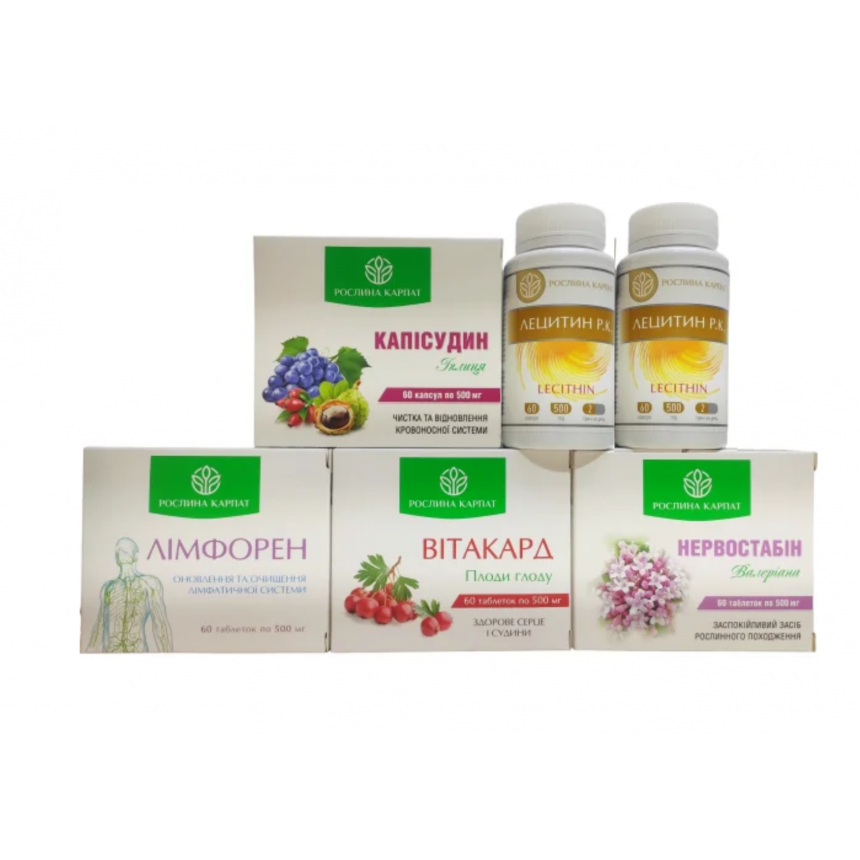 Програма "Для серцево-судинної системи при атеросклерозі та підвищеному тиску" від Рослина Карпат розроблена для підтримки серцево-судинної системи, контролю атеросклерозу та нормалізації артеріального тиску. До її складу входить 5 ефективних фітопрепаратів, дія яких спрямована на комплексне зміцнення судин, покращення серцевої діяльності, очищення організму та зменшення стресового навантаження.