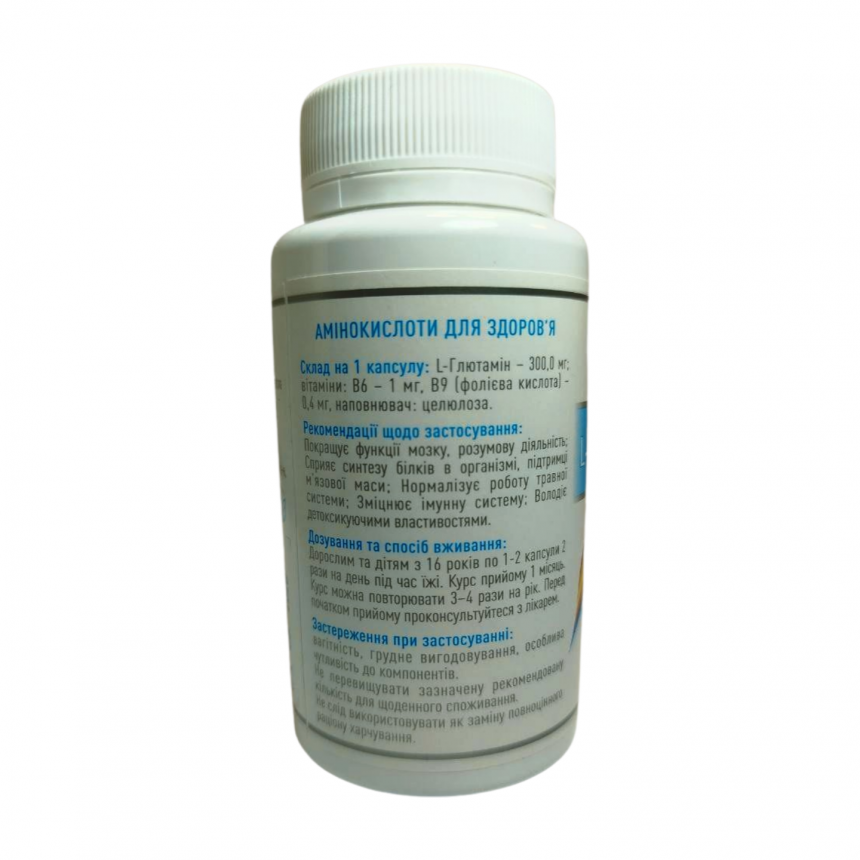 Склад на 1 капсулу: L-глютамін — 300 мг, Вітамін В6 — 0,6 мг, Вітамін В9 — 0,05 мг, Целюлоза (рослинна капсула)