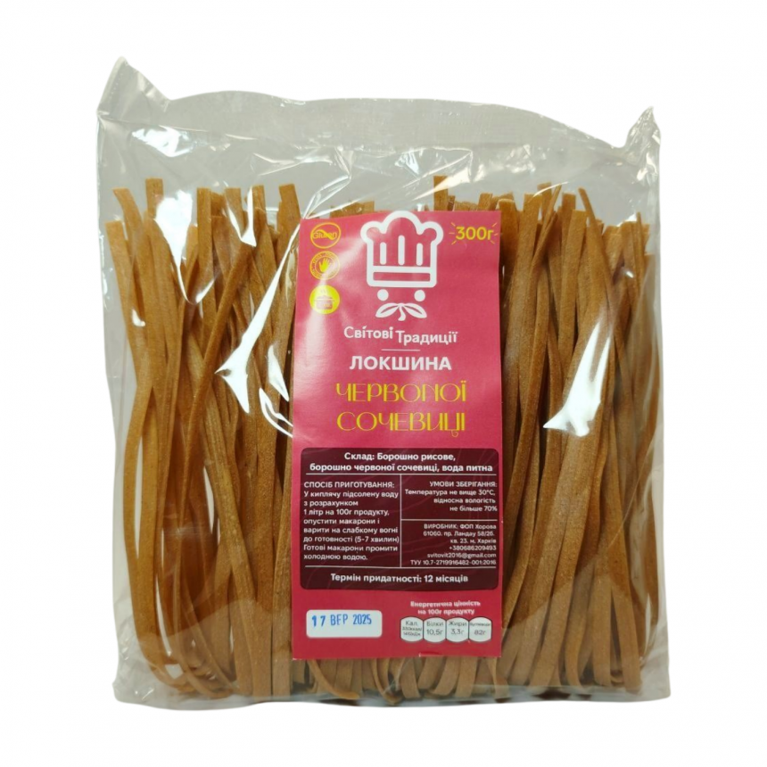 Локшина рисова з рожевою сочевицею – смачна та корисна страва, яка насичує без відчуття важкості у шлунку, надає енергії та позитивно впливає на стан здоров’я в цілому. Через відсутність глютену рисова локшина популярна серед прихильників здорового харчування та у людей з глютеновою непереносимістю.