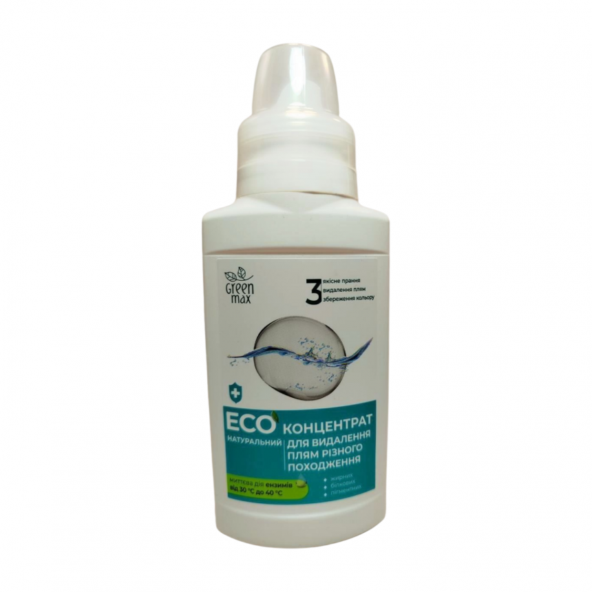 ЭКОконцентрат ТМ Green Max натуральный для удаления пятен и стойких загрязнений отличается исключительной деликатностью и эффективностью, не разрушает волокна тканей, при этом качественно удаляя самые разнообразные загрязнения. В составе присутствуют натуральные компоненты растительного и минерального происхождения. Формула EКОконцентрата разработана для качественного и безопасного удаления пятен и стойких загрязнений.