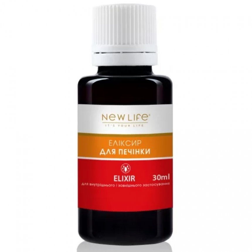Эликсир Для печени NEW LIFE – эффективное средство для поддержания здоровья печени и желчного пузыря, а также для выведения токсинов из организма. Натуральный многокомпонентный препарат содержит экстракты расторопши, шиповника, горца птичьего, кукурузных рылец и столбиков, мяты, ромашки и одуванчика. Не содержит ГМО, сахара и спирта.