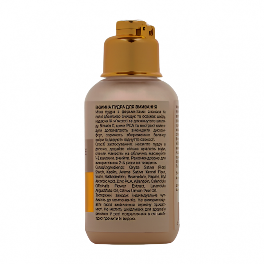 Состав: рисовый крахмал (Oryza Sativa Starch), каолин, овсяная мука, инулин, мальтодекстрин, бромелайн, папаин, этил аскорбиновая кислота, цинк PCA, аллантоин, экстракт календулы лекарственной, эфирное масло лаванды узколистной, эфирное масло лимона.
