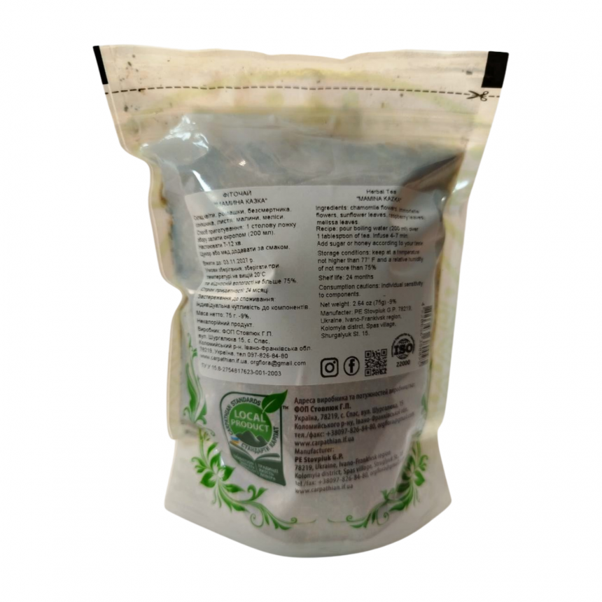 Фиточай «Мамина казка» создан на основе отборных карпатских трав — цветков ромашки, бессмертника и подсолнечника, а также листьев малины и мелиссы. Такое сочетание растений формирует мягкий, ароматный напиток, подходящий для ежедневного употребления и способствующий общему комфорту.