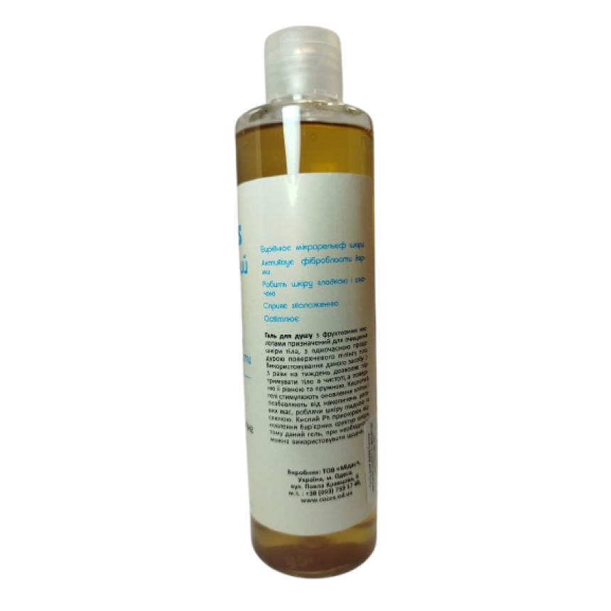 Натуральный гель для душа с фруктовыми кислотами предназначен для очищения кожи тела с одновременным мягким поверхностным пилингом. Применение средства 1–3 раза в неделю помогает поддерживать чистоту кожи, выравнивать её поверхность и сохранять упругость.