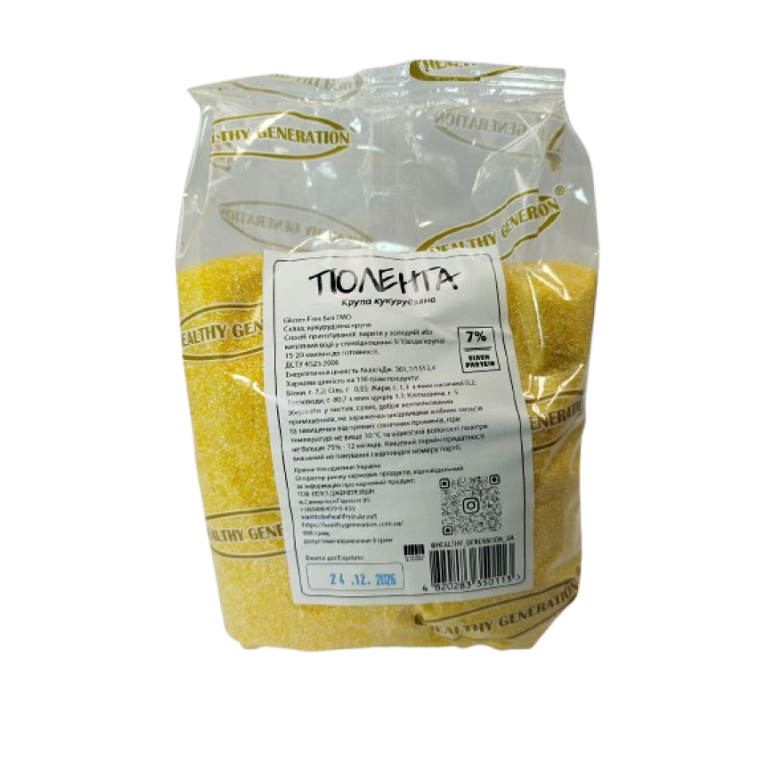 Крупа кукурузная Полента Healthy Generation — мелкая кукурузная крупа с мягким вкусом, насыщенным золотистым оттенком и приятной текстурой. Легко превращается в кремовую кашу, запеканки, жареные кусочки, гарниры или добавляется в выпечку. Универсальный продукт, который разнообразит повседневное меню.