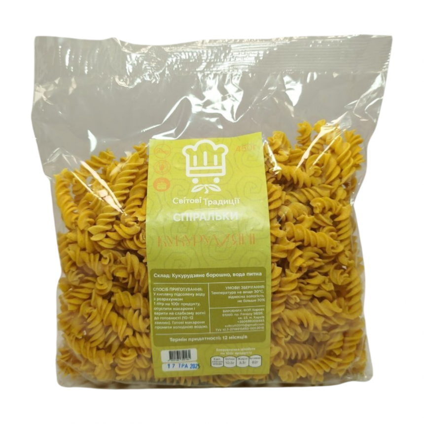 Макароны-спиральки кукурузные ТМ «Світові традиції» изготавливаются по специальному рецепту из кукурузной муки, которую ценят в Молдавии, Грузии и Мексике. Кукурузная мука отлично подходит всем, кто придерживается диетического питания. Это один из немногих низкоаллергенных продуктов, который считается безопасным для употребления при целиакии. Ведь белок кукурузы не содержит глютена и легко усваивается организмом. Кукурузные макароны «Світові традиції» понравятся всем поклонникам здорового питания и подойдут веганам, они не содержат яиц, лактозы, консервантов и синтетических красителей.