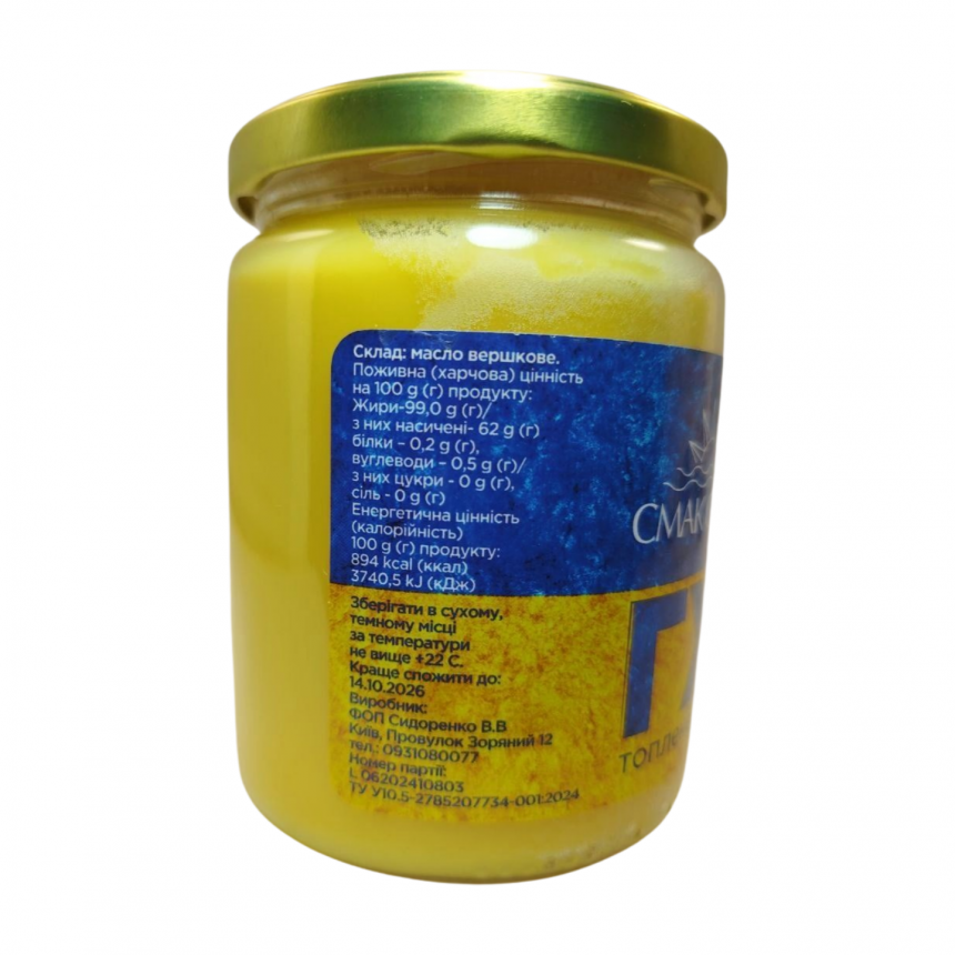 Масло Гхи — это очищенное топлёное сливочное масло, полностью освобождённое от казеина, лактозы, воды, молочных остатков и любых добавок. Благодаря этому продукт подходит людям с непереносимостью лактозы и может использоваться теми, кто следит за уровнем холестерина.
