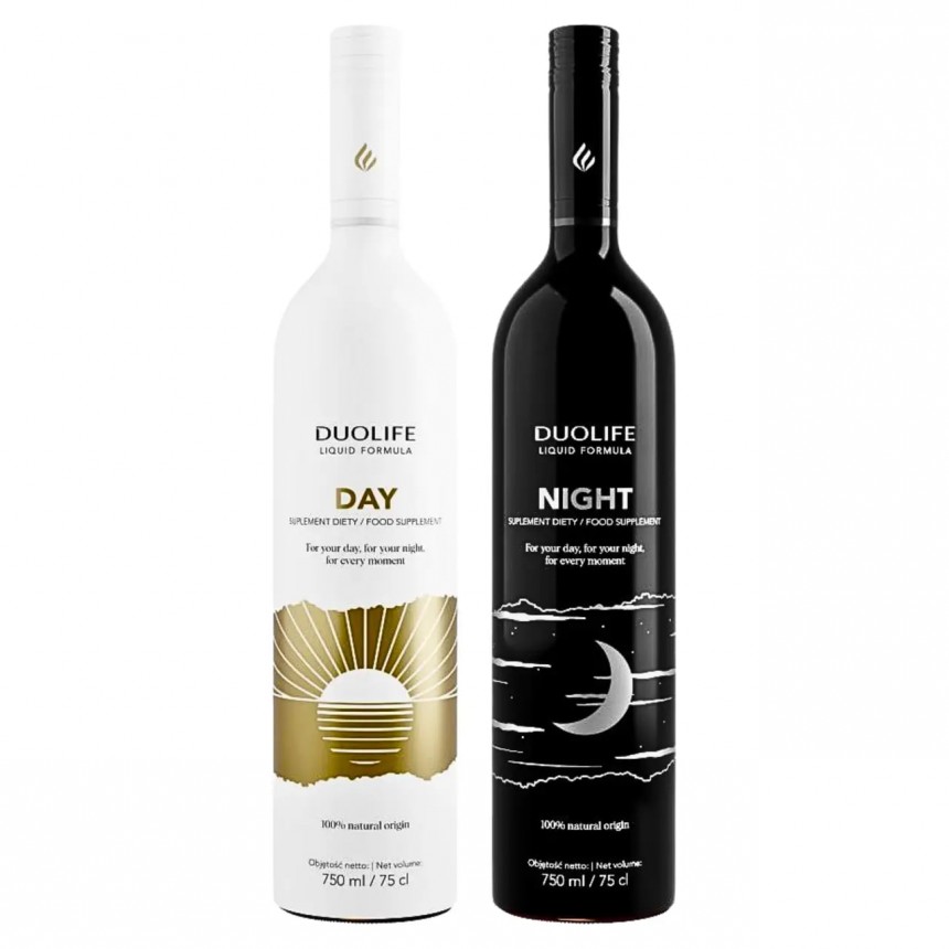 Биоактивная добавка «День и Ночь» DuoLife (жидкая форма) – это набор двух фитокомплексов, которые идеально дополняют друг друга и разработаны с учетом особенности функционирования систем организма в разное время суток. DuoLife «День» дает заряд энергии для продуктивной работы днем, а DuoLife «Ночь» улучшает качество сна и обеспечивает полноценный отдых ночью. Растительные экстракты содержат антиоксиданты, аминокислоты, витамины и минералы, которые укрепляют иммунитет, очищают организм и улучшают общее состояние - как физическое, так и эмоциональное.