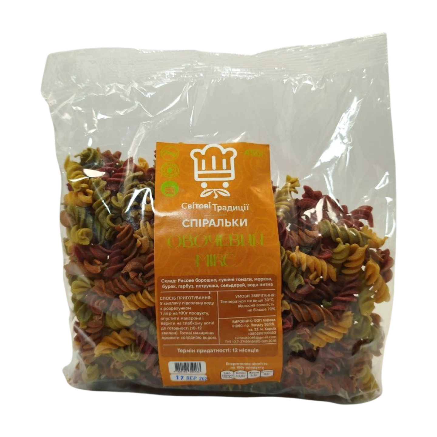 Макароны-спиральки рисовые овощные (без глютена) "Світові Традиції" 500 г