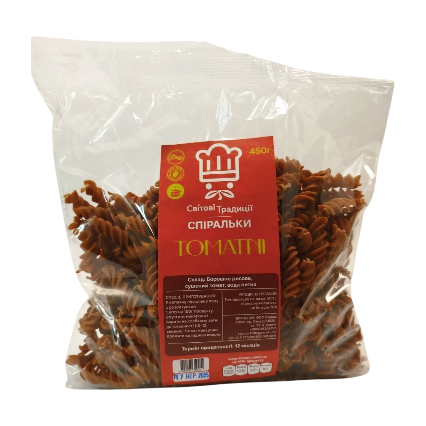 Макароны-спиральки рисовые томатные (без глютена) "Світові традиції" 500 г