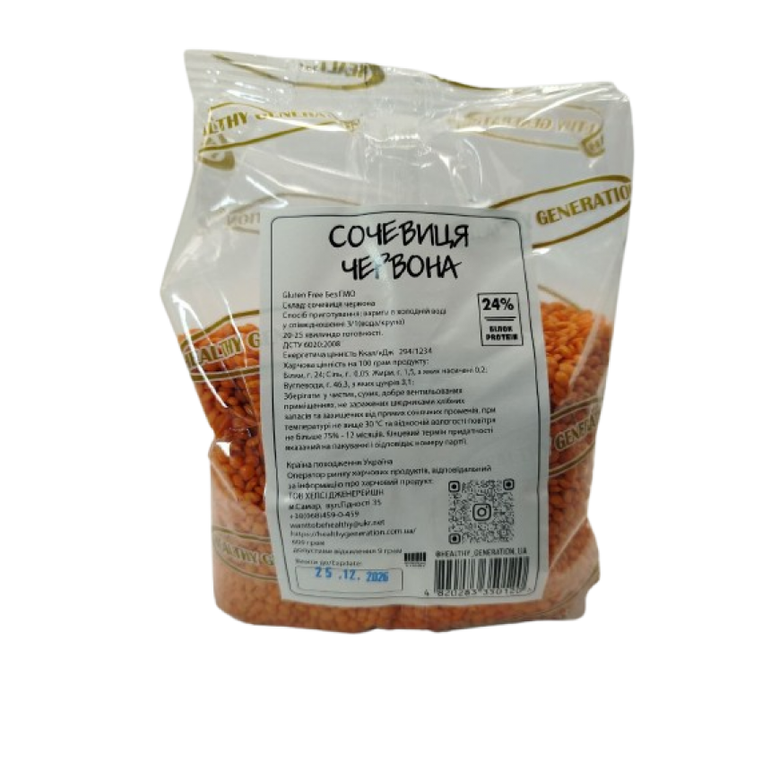 Склад: 100% сочевиця червона. Без добавок і консервантів.