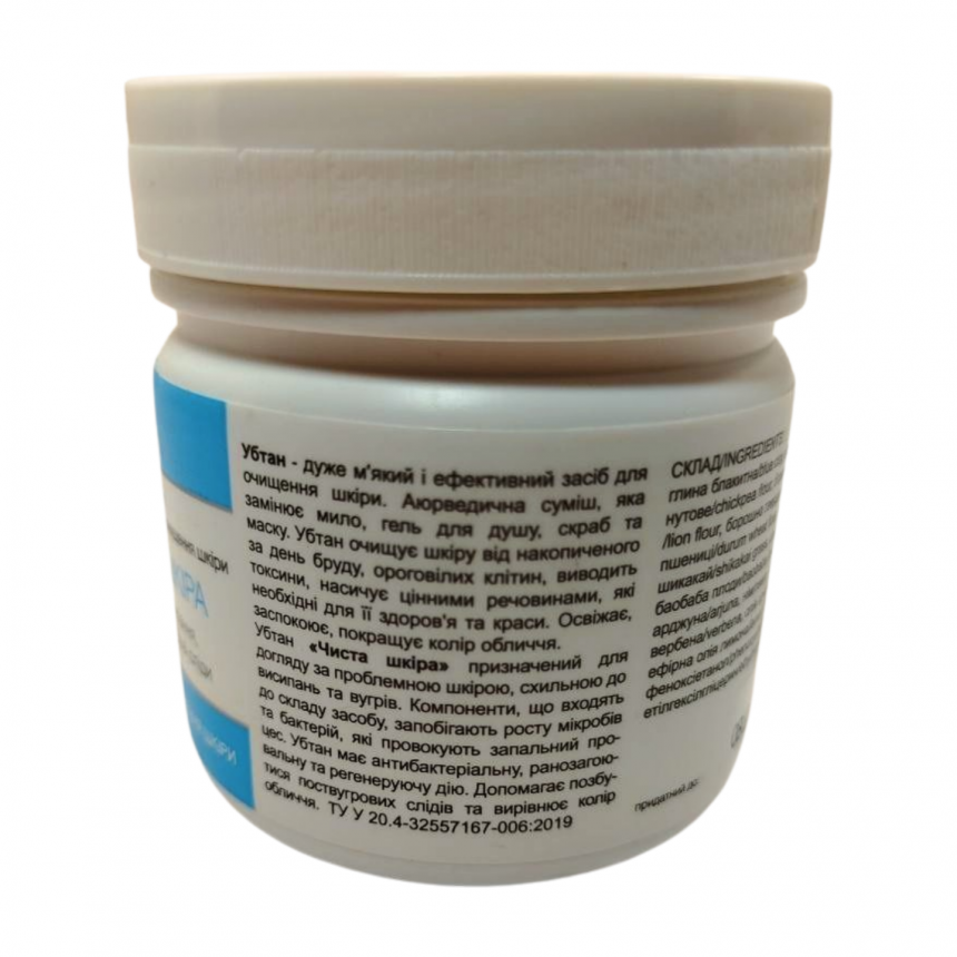 Убтан «Чиста шкіра» — натуральний засіб для догляду за проблемною шкірою, схильною до висипань і акне. М’яко очищає, зменшує запалення і сприяє відновленню здорового вигляду шкіри.